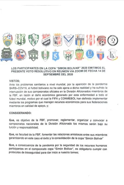 Con estas guías, cada club deberá hacer llegar a la FBF y esperar la aprobación de sus protocolos que deben pasar por manos del Ministerio de Salud, Viceministerio de Deportes y la Sociedad Boliviana de Medicina Deportiva (Sobomed).